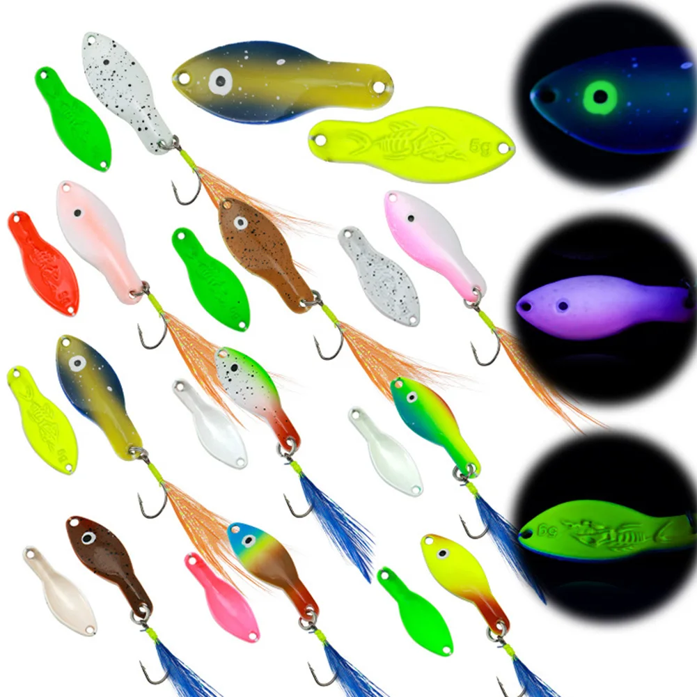 ![]() Metal Blade Fishing Lures 360 Degree Rotating Crank Spinner Baits Reflective Sequins Lures Feather Tail for Saltwater Freshwater Features: 1. 360° Reflective Rotation: These metal blade fishing lures feature a 360° rotating design that creates dynamic reflections, mimicking the movement of prey. The high-speed rotation and reflective surface attract fish by simulating lifelike baitfish, increasing strike rates in various water conditions. Specification: Origin: Mainland China Position: Ocean Boat Fishing,Ocean Beach Fishing,LAKE,River,Reservoir Pond,stream,Ocean Rock Fishing,Management Field Size: Box: 130x90mm 5.12x3.54inch Lui: 36mm/1.42inch 40mm/1.57inch Material: Zinc Alloy Function: Long-Distance Casting Hook Type: Sharp Feather Single Hook Type: Full Swimming Layer Quantity: 10pcs Note: ![]() 10 x Lures ![]() |